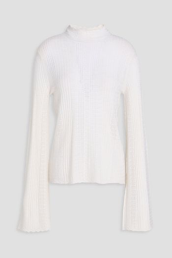 Ribbed bouclé-knit merino wool-blend turtleneck sweater