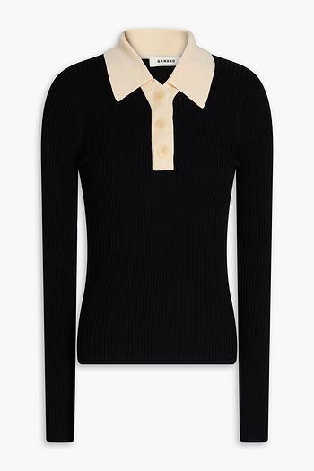 Faux pearl-embellished ribbed wool and cashmere-blend sweater