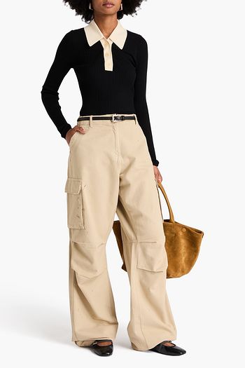 Ruffled poplin-trimmed wool and cashmere-blend sweater