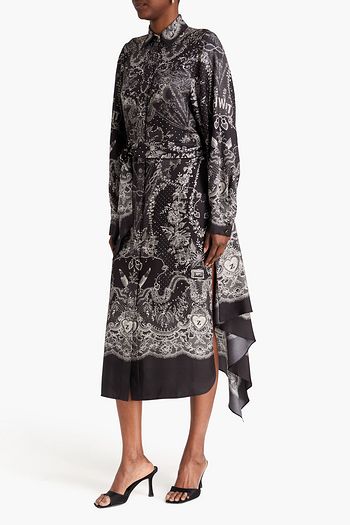 Bow-detailed zebra-print wool-blend crepe mini dress