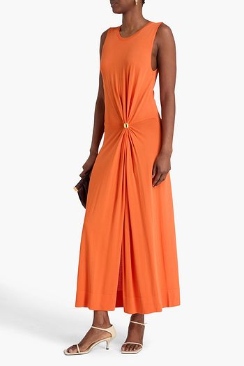 Embellished pleated crepe midi dress