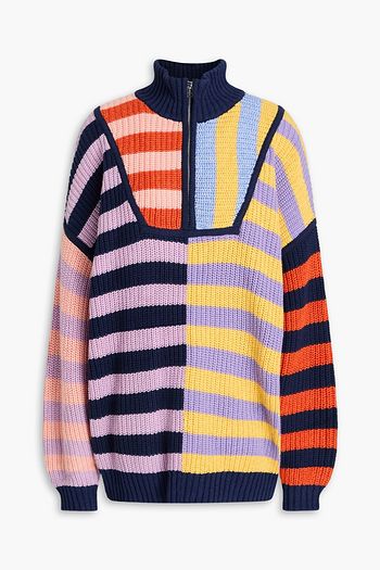 Waffle-knit cotton and cashmere-blend half-zip sweater