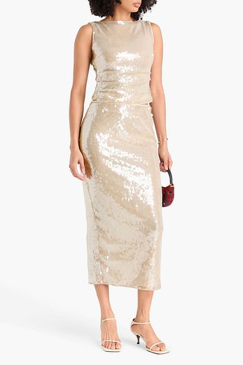 Sequin-embellished mikado midi pencil skirt