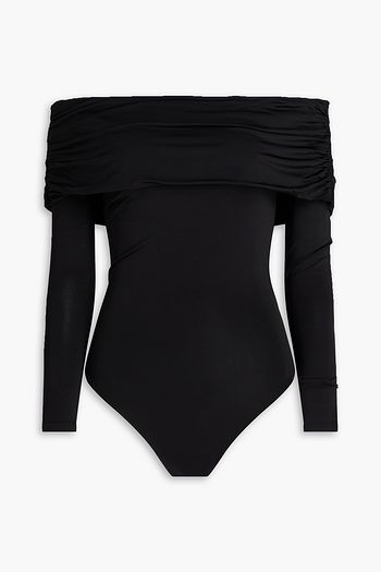 Off-the-shoulder ruched stretch-jersey bodysuit