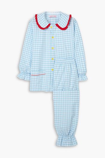 Ruffled gingham cotton-flannel pajama set