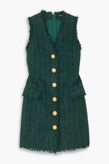 Double-breasted bead-embellished wool blazer