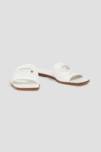 Bead-embellished textured-leather slides