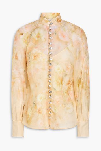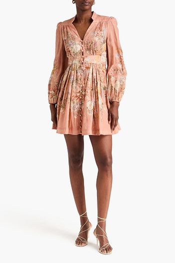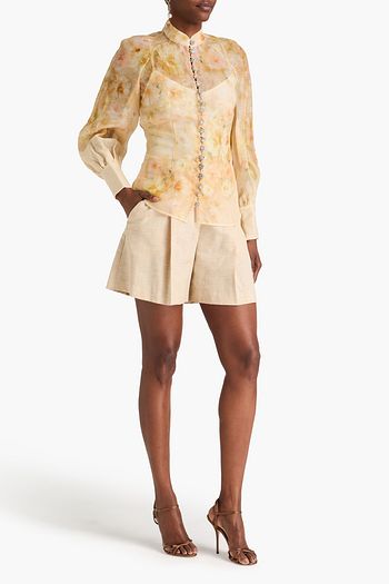 Cold-shoulder floral-print linen and silk-blend maxi dress