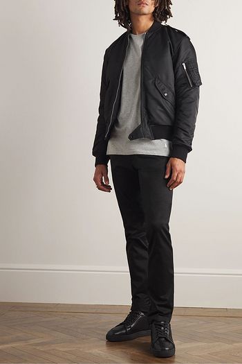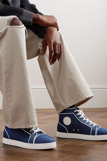 Logo-embroidered leather-trimmed denim high-top sneakers