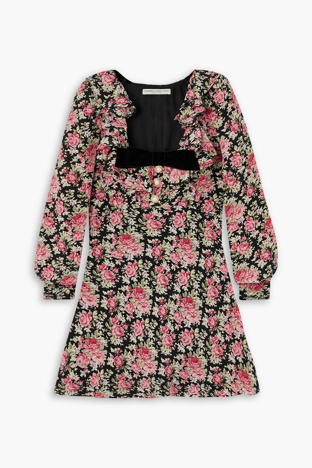 Alessandra Rich's mini dress just couldn't get any prettier. Cut from silk crepe de chine printed with romantic roses, it's detailed with a plush velvet bow and vintage-inspired decorative buttons.
