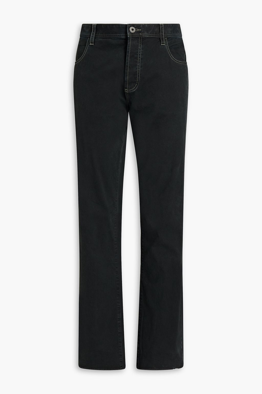 - Slim straight leg, mid-rise style