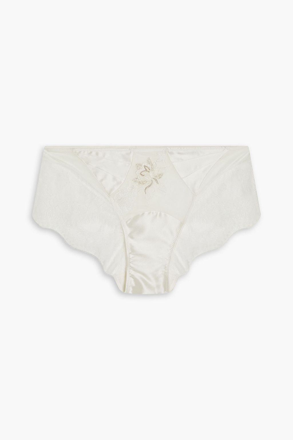 Emotion Beauté paneled satin, mesh and lace mid-rise briefs