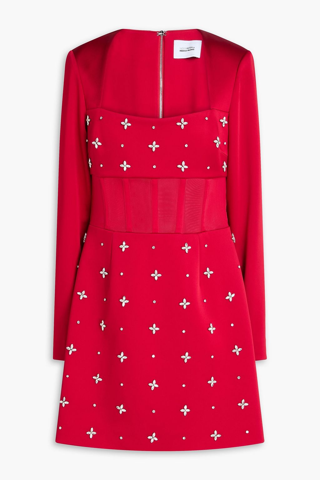 REBECCA VALLANCE Carmella crystal-embellished tulle-paneled satin mini dress