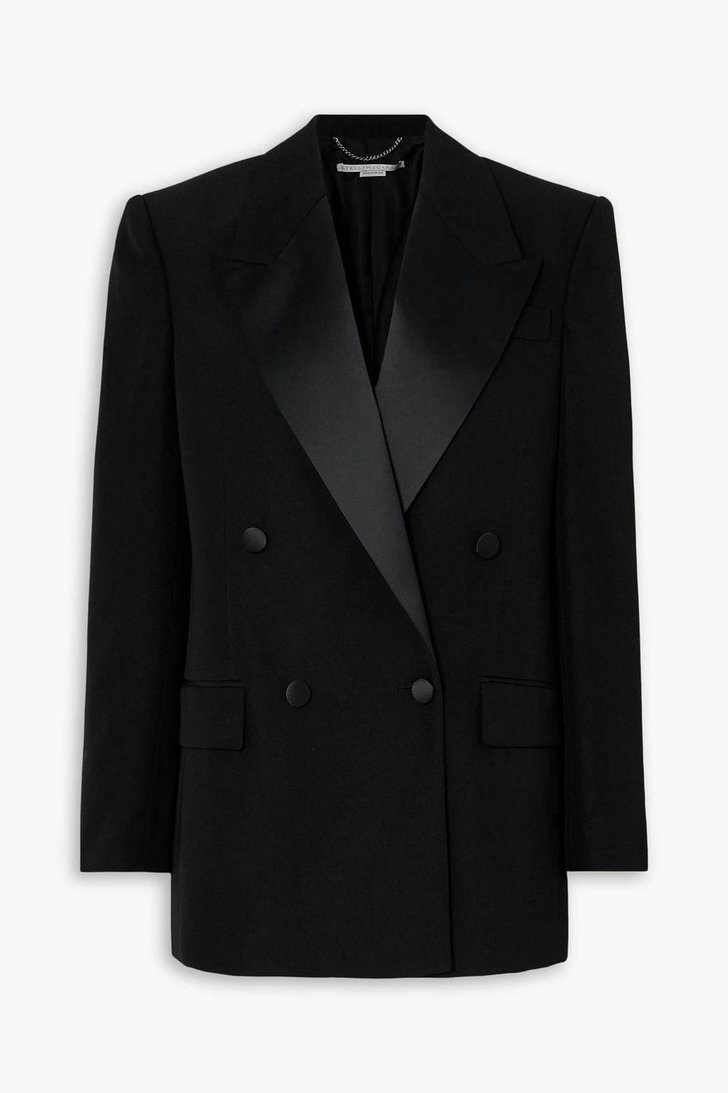 STELLA MCCARTNEY Double-breasted satin-trimmed grain de poudre wool blazer