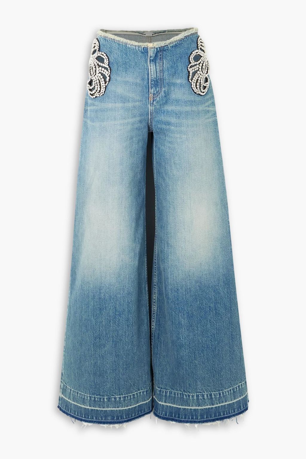STELLA MCCARTNEY Cutout crystal-embellished frayed mid-rise wide-leg jeans