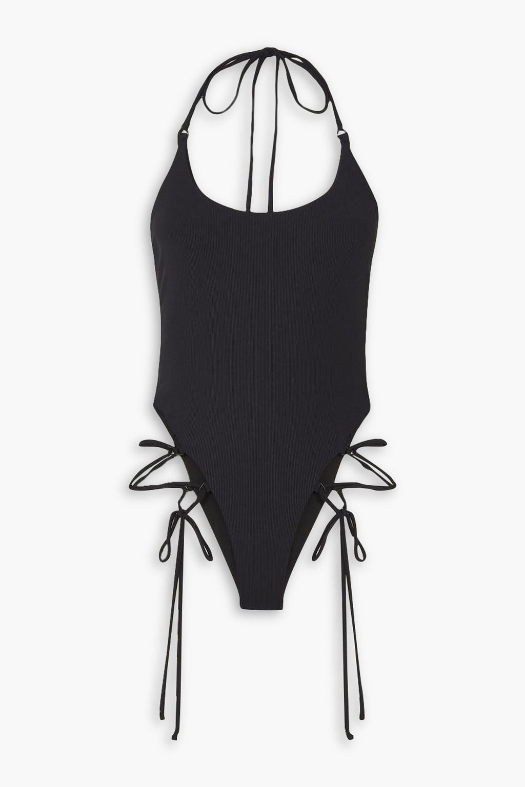 The Attico's swimsuit would be right at home poolside and paired with vinyl pants on the dance floor. Made from stretchy black fabric, it's finely ribbed and has adjustable string ties.