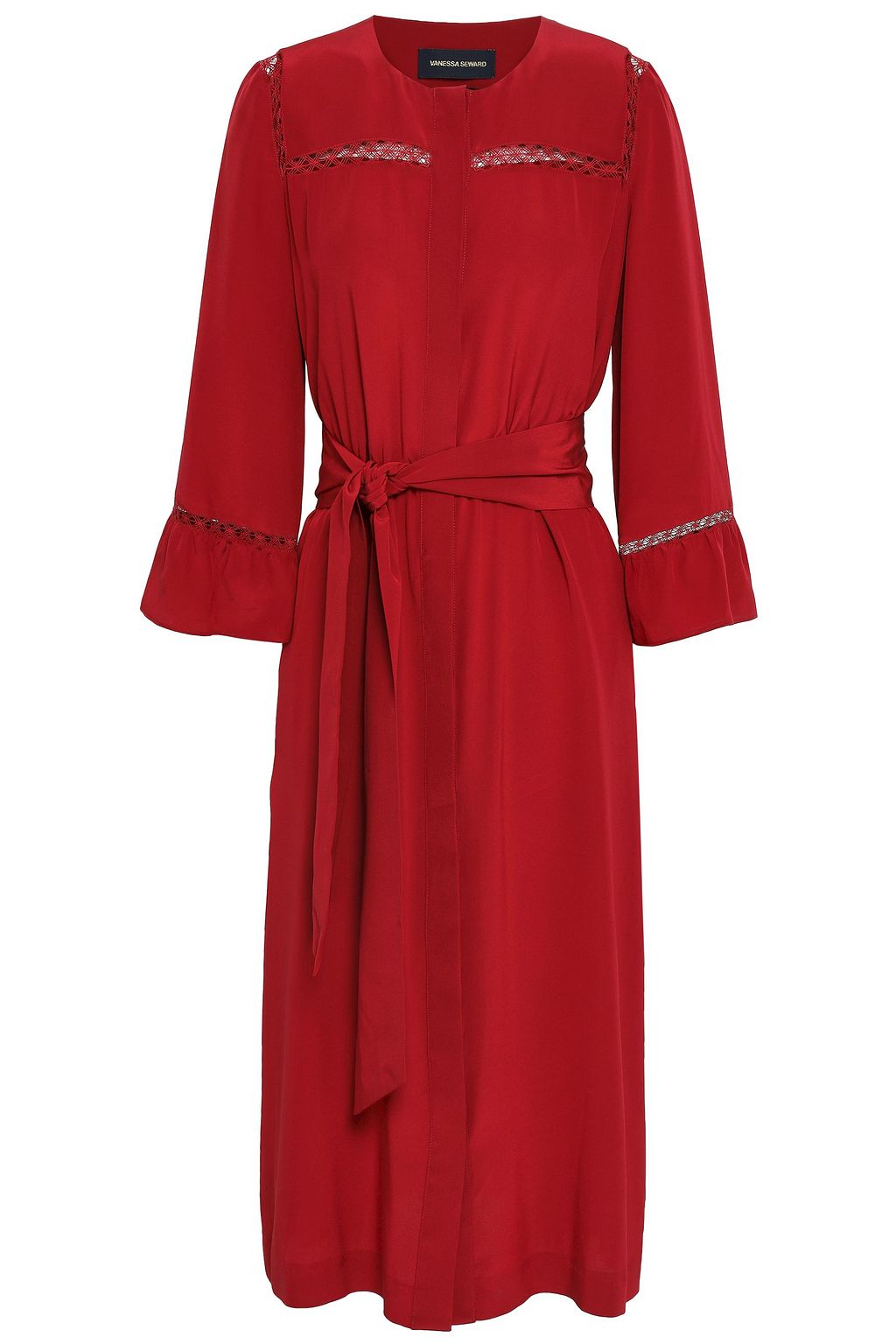 Lattice-trimmed silk midi dress