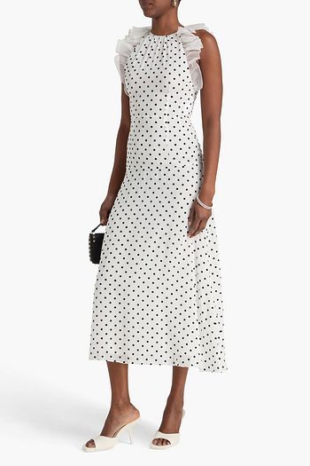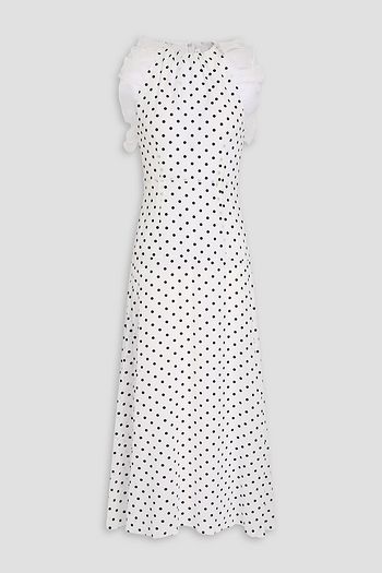 Draped polka-dot silk crepe de chine mini dress