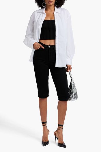 Cropped crystal-embellished stretch-jersey turtleneck top