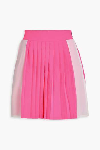 Skirt-effect pleated tech-jersey shorts