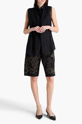 Layered bead-embellished linen and silk-blend top