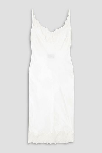 Asymmetric appliquéd metallic fil coupé voile midi dress
