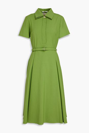 Belted printed silk-twill midi dress