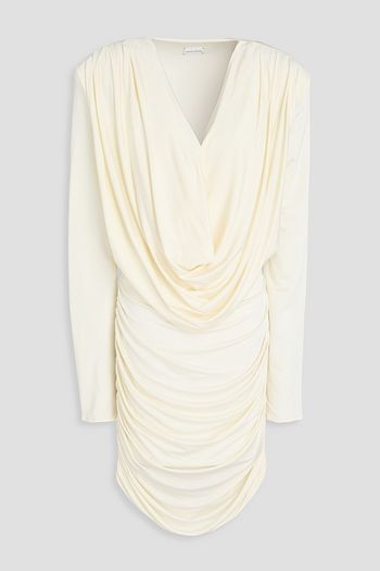 Off-the-shoulder ruched cutout stretch-crepe mini dress