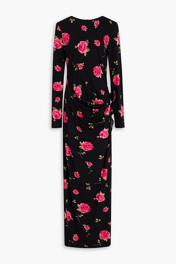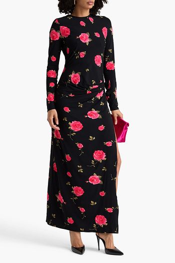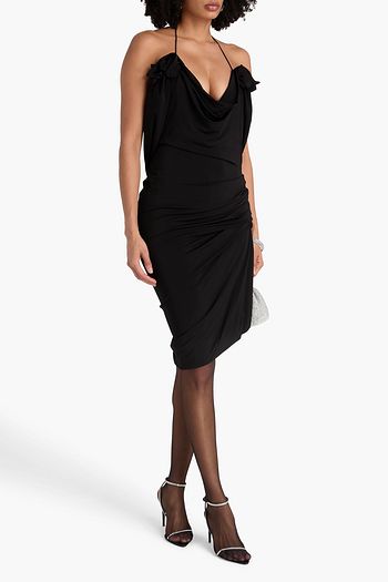 Ruched floral-appliquéd jersey halterneck maxi dress
