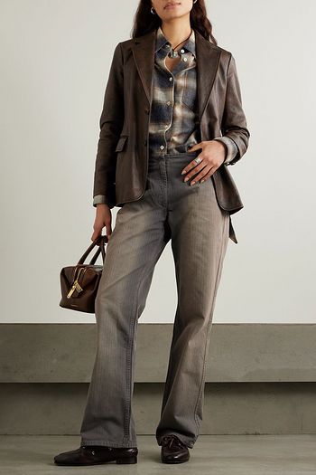 Moto Cut paneled corduroy-trimmed mid-rise slim-leg jeans