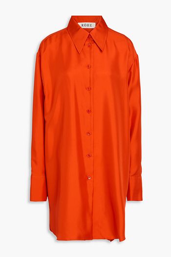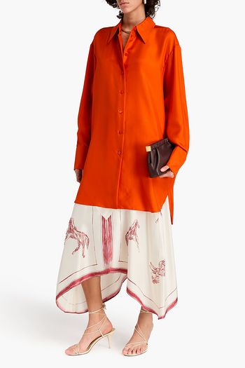Cutout silk-twill midi shirt dress