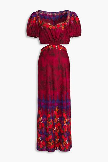 Vida ruffled floral-print silk-satin jacquard maxi dress