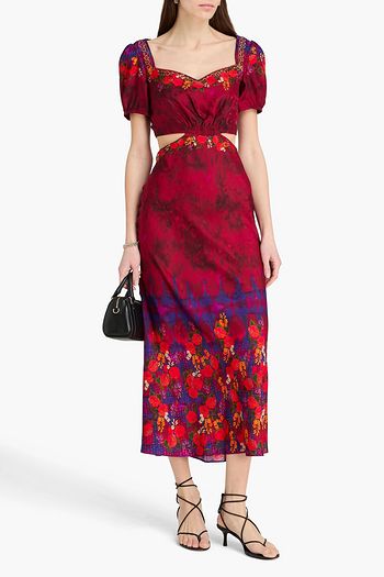 Neelam cutout printed linen midi dress