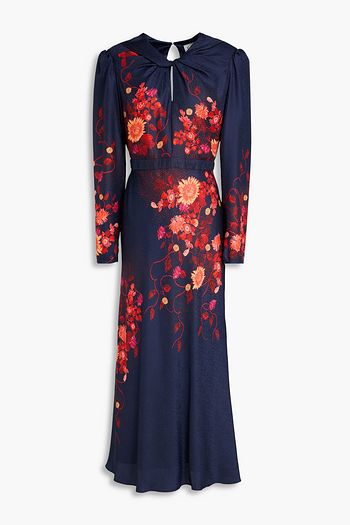 Fleur pleated printed satin-jacquard midi dress