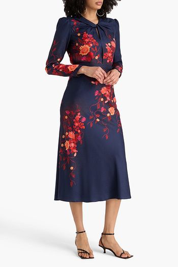Floral-print silk-satin midi dress