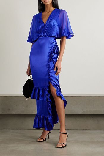 Fleur ruffled silk-georgette and jacquard midi dress