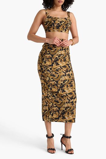 Dotty twisted floral-print satin-jacquard top