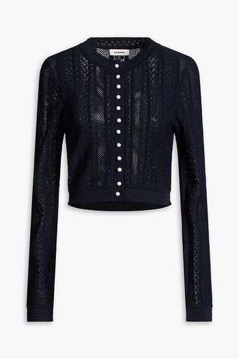 Cropped pointelle-knit cardigan
