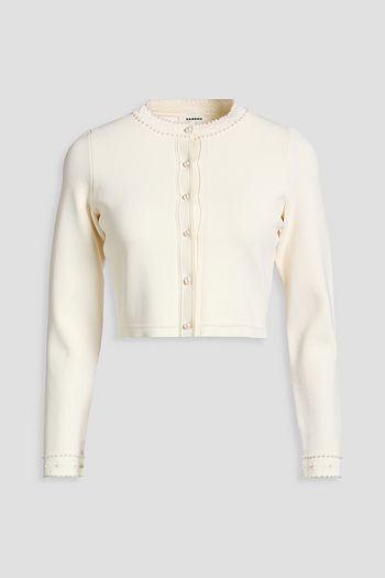 Cropped bead-embellished knitted cardigan