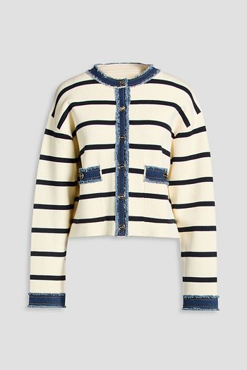 Striped ribbed-knit cardigan