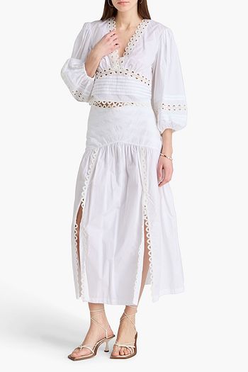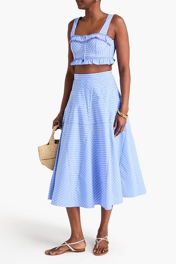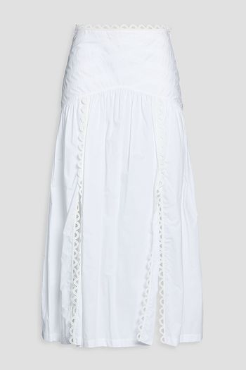 Crochet-trimmed linen-blend midi skirt