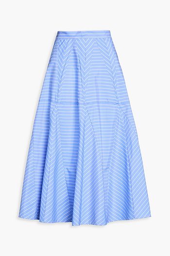 Pleated printed satin-twill midi skirt