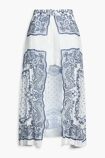 Pleated paisley-print satin-twill midi skirt
