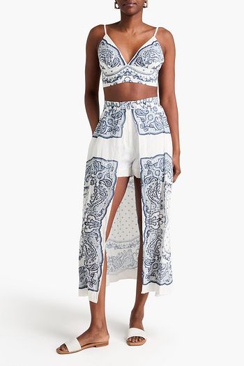 Tiered printed cotton-poplin maxi skirt