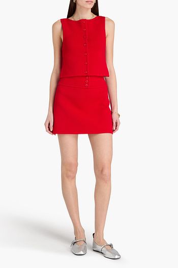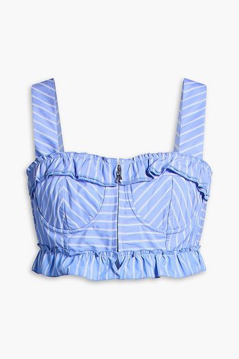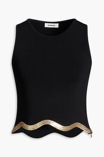 Cropped ruffled crochet-trimmed ribbed-knit tank