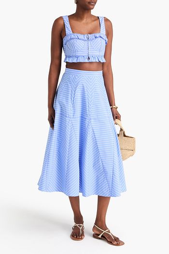 Cold-shoulder cropped broderie anglaise linen-blend top