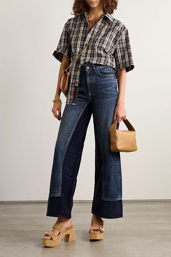 Cutout crystal-embellished frayed mid-rise wide-leg jeans