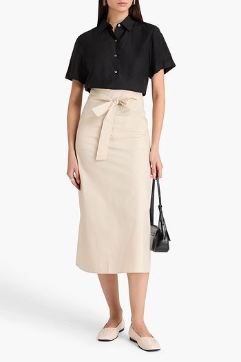 Tie-detailed cotton-poplin midi skirt