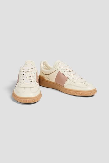 Rockstud Untitled metallic smooth and pebbled-leather platform sneakers