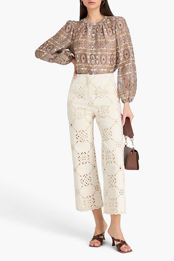 Kehlani broderie anglaise cotton-blend straight-leg pants